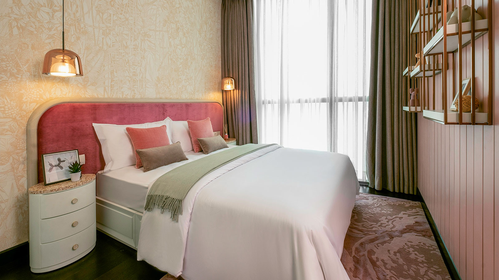 Enjoys floor-to-ceiling windows measuring an impressive 16 meters wide and 3 meters high.